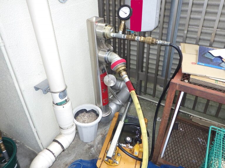 東京都新宿区新宿のマンションで、連結送水管の配管耐圧性能試験を実施しました。